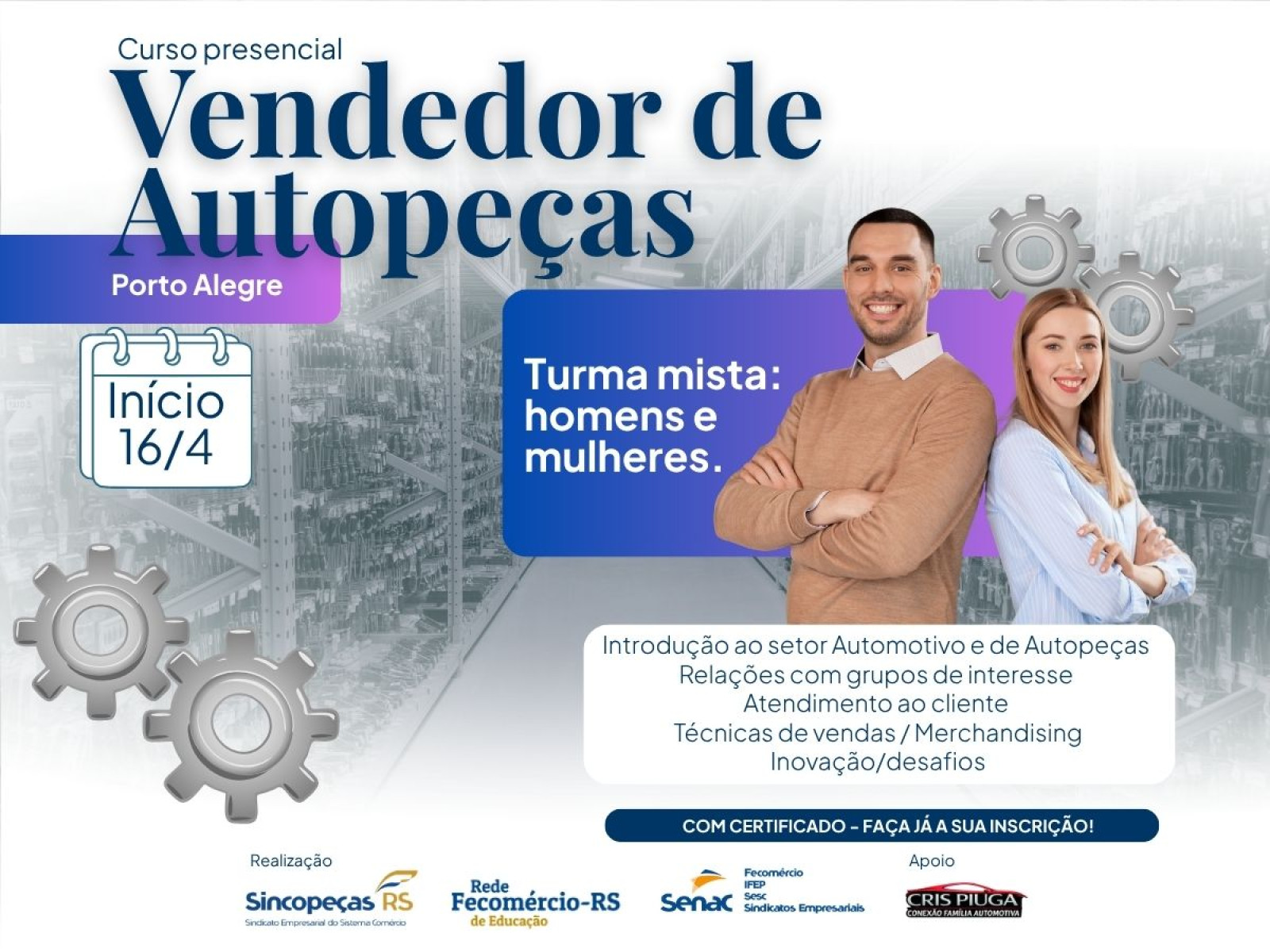Curso Vendedor de Autopeças, para homens e mulheres, em POA